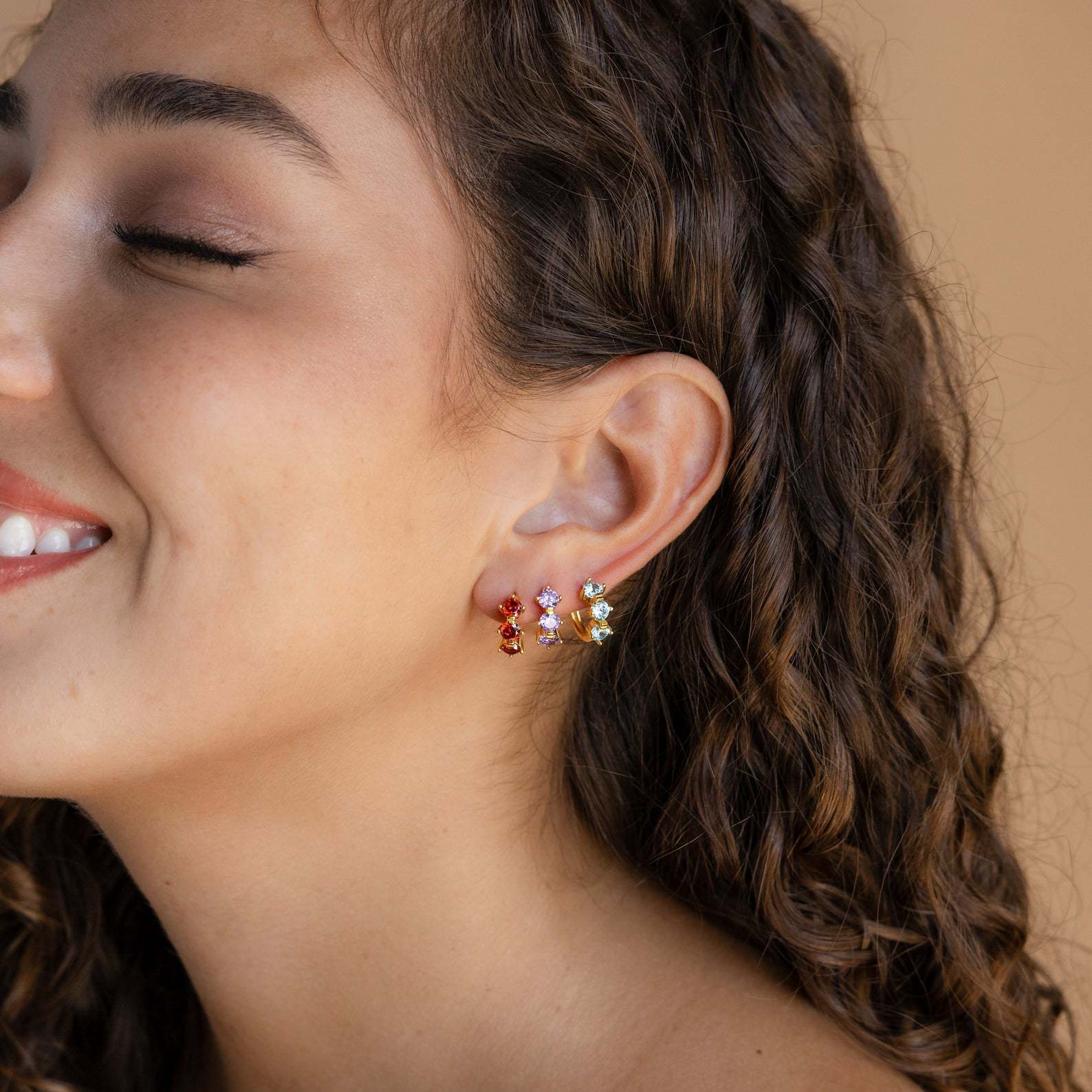 Gold Birthstone Stud Earrings – Zodiac-Inspired Set | STUD